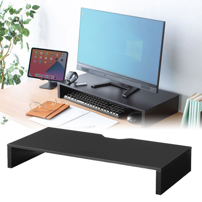 <関連キーワード>MR-LC101BKN 机上 モニタスタンド 机上台 キーボード収納 シンプル 黒 完成品 収納 テレビ 耐荷重10kg スマホ タブレット 滑り止め おしゃれ