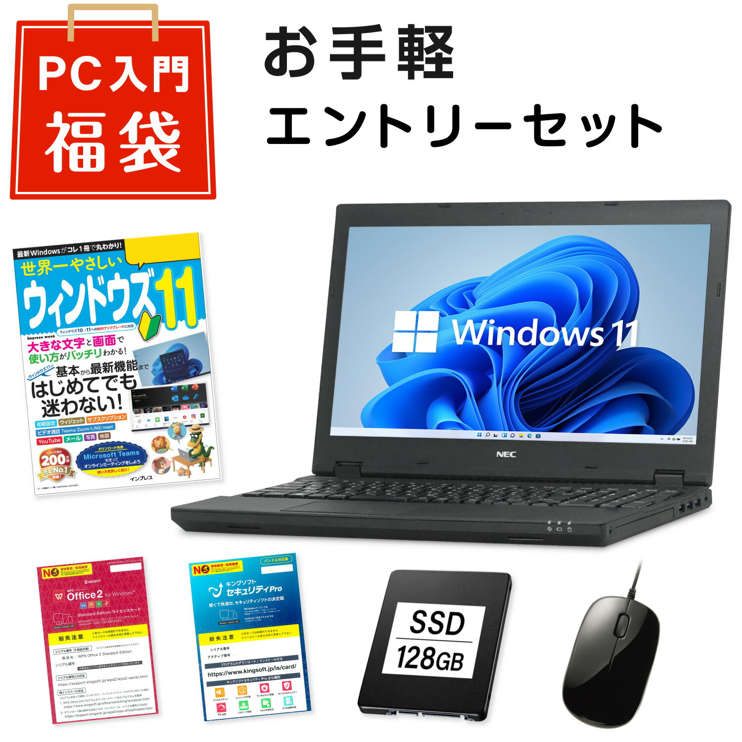 NEC VersaPro おまかせ 第6世代 Celeron メモリ:4GB 新品SSD:128GB ノートパソコン 15.6インチ 無線LAN 有線マウス セキュリティソフト ガイドブック付 中古ノートパソコン 中古パソコン Windows 11 搭載 お手頃エントリーセット【福袋】