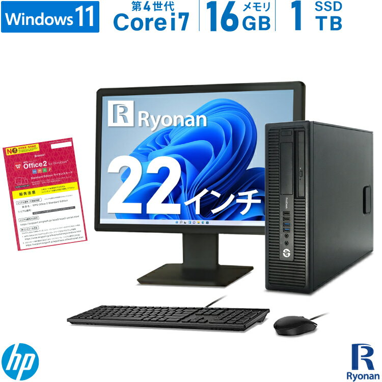 SSD無料アップグレードキャンペーン HP ProDesk 600 G1 SFF 第4世代 Core i7 メモリ:16GB 数量限定グレードUP中! 新品SSD:1TB デスクトップパソコン 22インチ 液晶 新品キーボード マウス DVD-ROM Office付 モニターセット Windows11 Windows10