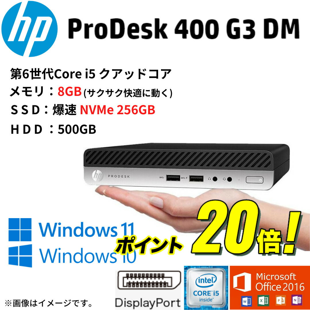 【超小型省スペース】中古パソコン デスクトップPC HP ProDesk DMシリーズ 第6世代 Core i5 メモリ8GB 爆速 NVMe SSD256GB HDD500GB WiFi Bluetooth 無線LAN内蔵 選べるOS Windows11 Windows10 Office2016 付き アキデジタル