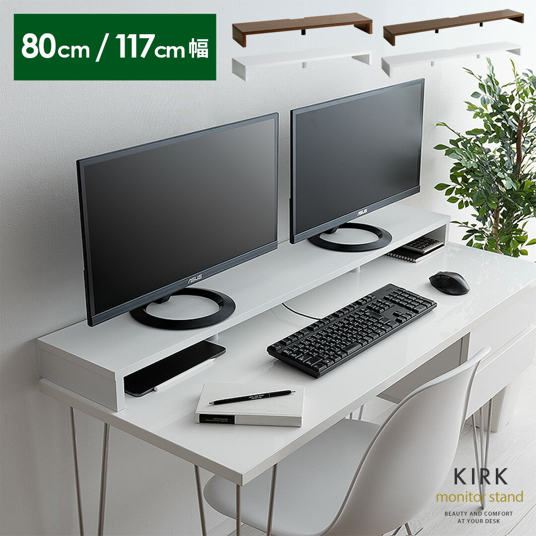 | モニター台 机上台 モニターラック パソコン台 机上 卓上 パソコンラック 120cm幅 ワイド デュアルモニター対応 台 モニタースタンド 収納 在宅ワーク おしゃれ 木目 北欧 モダン シンプル ホワイト 白 ブラウン 茶色 120cm幅デスク対応モニタースタンド KIRK(カーク)