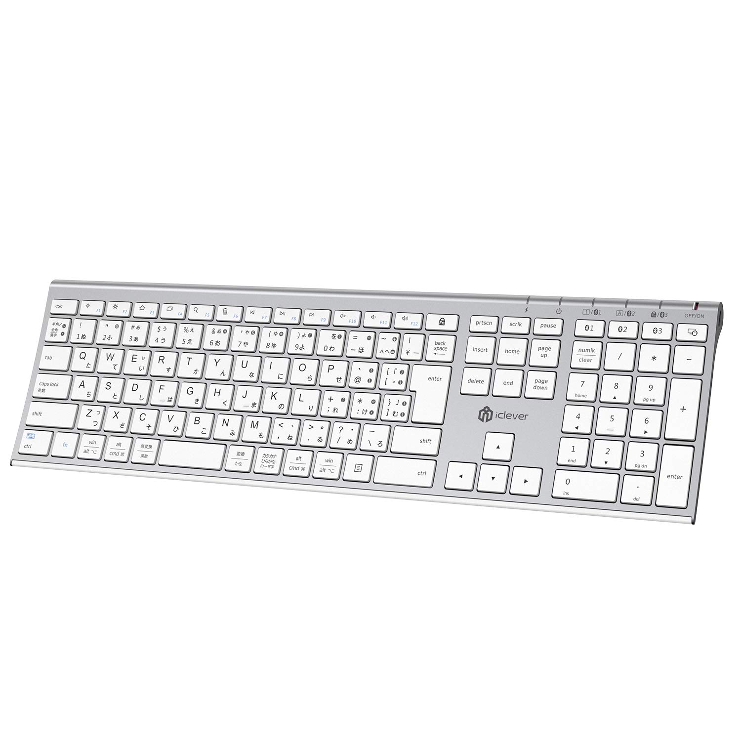 iClever キーボード Bluetooth 日本語 JIS配列 ワイヤレス キーボード 無線 3台同時接続可能 type c充電式 フルサイズ 超薄型 メンブレン キーボード 静音 テンキー付