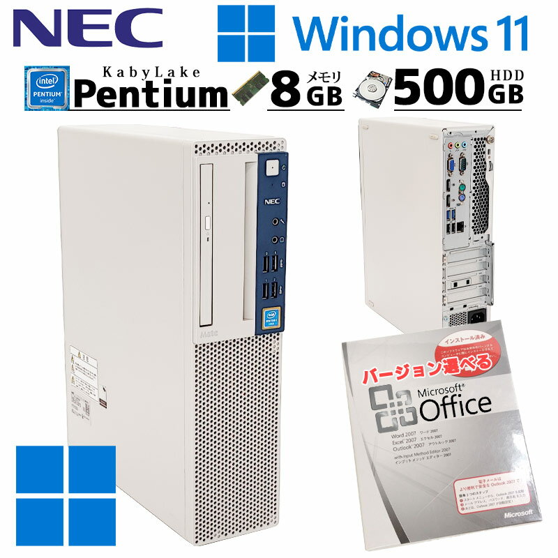 店長おすすめ 中古パソコン Microsoft Office付き NEC Mate MKR35/B-1 Windows11 Pro Pentium G4560 メモリ 8GB HDD 500GB DVD-ROM (3671of) 3ヵ月保証/ 初期設定済み マイクロソフトオフィス デスクトップパソコン 本体のみ 中古PC