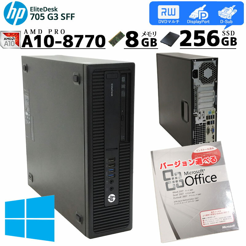 店長おすすめ 中古パソコン Microsoft Office付き HP EliteDesk 705 G3 SFF Windows10 Pro PRO A10-8770 メモリ 8GB SSD 256GB DVD マルチ (3155of) 3ヵ月保証/ 初期設定済み マイクロソフトオフィス デスクトップパソコン 本体のみ 中古PC