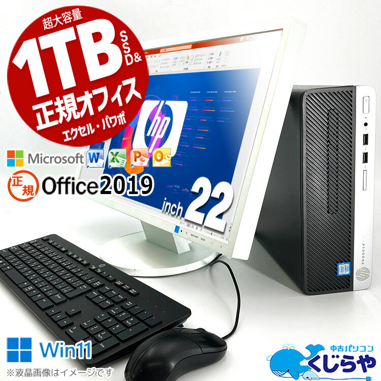 | 永久無料サポート付 ネタ替わり デスクトップパソコン Microsoft Office付き 中古 Word Excel PowerPoint マイクロソフト 新品 SSD 1000GB 1TB Windows11 HPDesk 400G4 Corei3 8GB 22型 中古パソコン 中古デスクトップパソコン