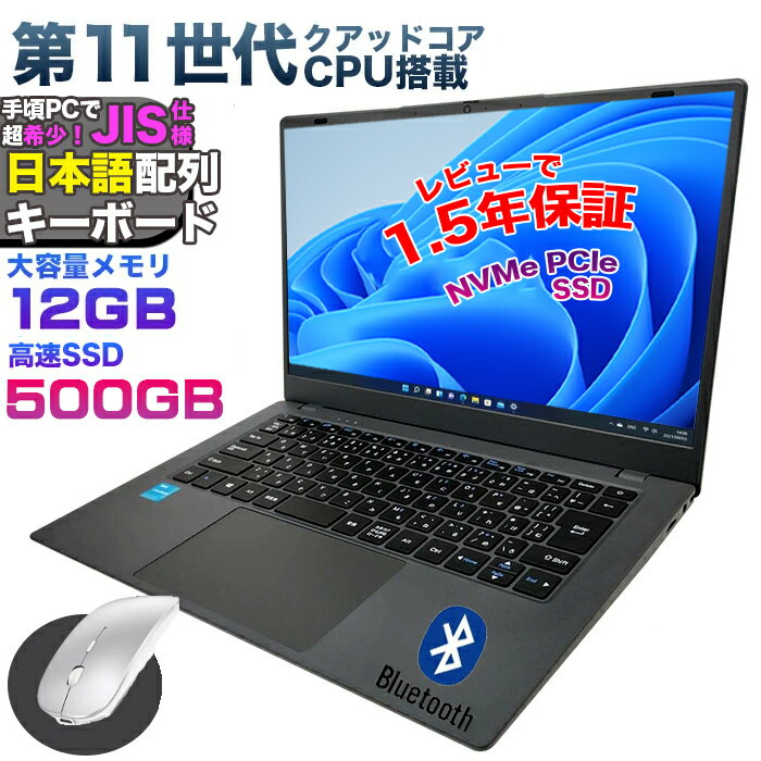 2.0GHz(最大2.9GHz) 4コア4スレッド ディスプレイ 14インチ 画像解像度 1920×1080 (フルHD) RAM 12GB DDR4 ストレージ M.2 NVMe PCIe3.0 SSD 500GB 無線LAN 有り(5GHz&2.4GHz デュアルWIFI) Bluetooth 付き インターフェース USB3.0、USB2.0、USB Type-C、HDMI、マイクロSDスロット、WEBカメラ、内蔵スピーカー その他仕様日本語配列(JIS規格)キーボード仕様 付属ソフト KINGSOFTOffice(WPSOffice)