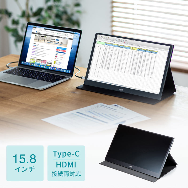【2個でポイント5倍・3個以上でポイント10倍※要エントリー】モバイルモニター モバイルディスプレイ ポータブルモニター USB Type-C HDMI接続 15.8インチ 在宅勤務 ゲーム DP-03 サンワサプライ