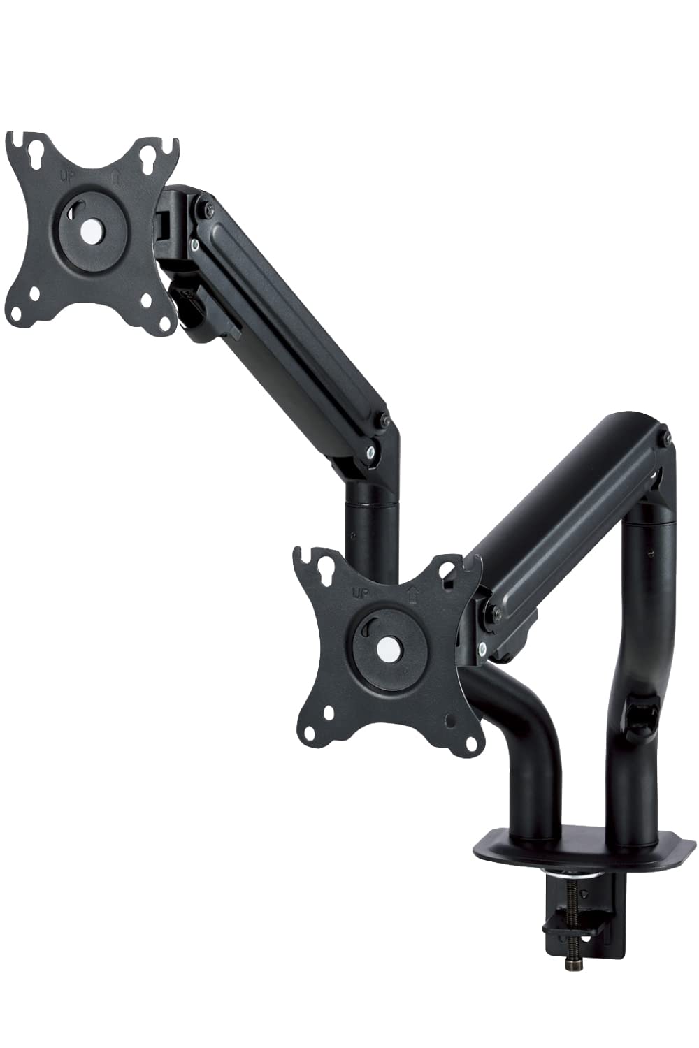 17〜32インチサイズのモニターに対応するロングアームのメカニカルスプリング式ダブルモニターアームです。