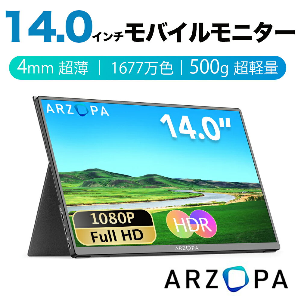 15.6インチ ゲーミングモニター モバイルディスプレイ ARZOPA ゲームモニター 薄型 ミラーリング・スマホ・Switch・XBOX ONEなど対応 Type-C/mini HDMI/スタンド付 IPSパネル 在宅勤務 金属製 GAMUT MINI 1920x1080FHD IPS液晶 モバイルディスプレイ 非光沢 軽量 薄型ディスプレイ 標準HD/USB/Type-C/mini HDMI端子/iPhone/PS4/PS5/XBOX/Switch/PC/Macなど対応 折りたたみ 保護カバー付き PSE認証済み ブラック新規お友だち登録で 今すぐ使えるクーポン