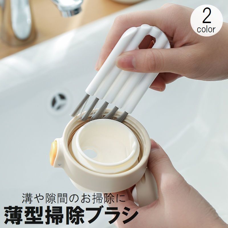 細かな溝や隙間のお掃除にぴったりな薄型掃除ブラシ☆ 掃除箇所の形に合わせて持ち手が曲がり、奥の方までスッキリお掃除できます♪