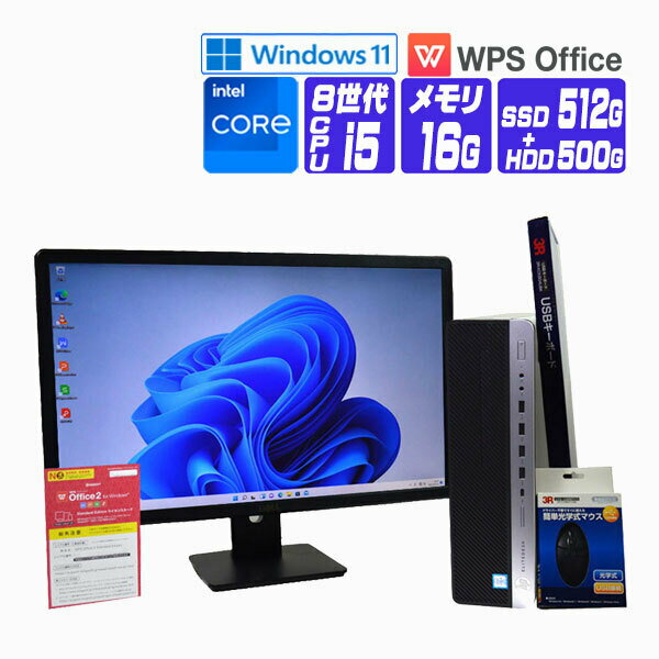 11 全基準クリア オフィス付き 23型 FullHD 液晶セット NVMe SSD 搭載 2018年製 HP EliteDesk 800 G4 SFF 第8世代 Core i5 8500 メモリ 16G SSD 512G + HDD 500G 新品USBマウス・キーボード付 Windows