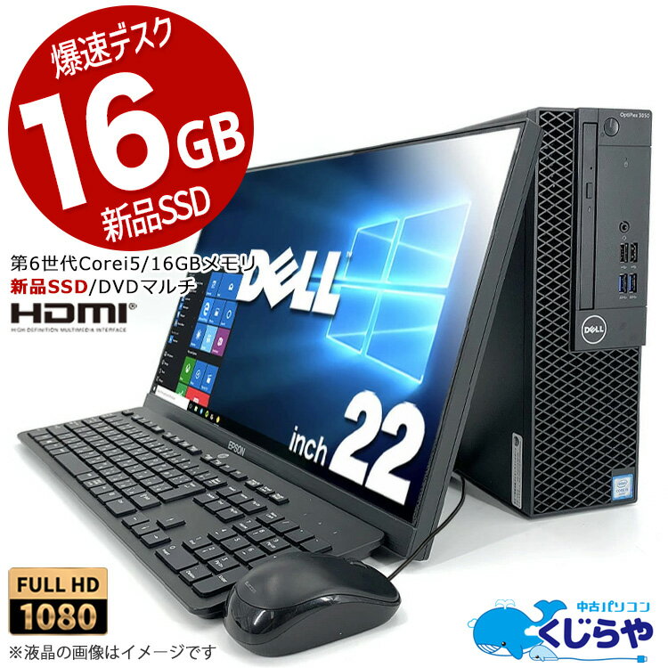 | 永久無料サポート付 ネタ替わり デスクトップパソコン 中古 Office付き 16GB フルHD 新品 SSD 液晶セット 訳あり Windows10 DELL OptiPlex 3050 Corei5 22型 中古パソコン 中古デスクトップパソコン