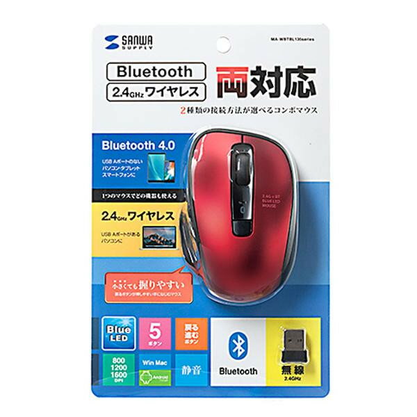 | サンワサプライ ワイヤレス ブルーLEDコンボマウス (レッド) MA-WBTBL135R