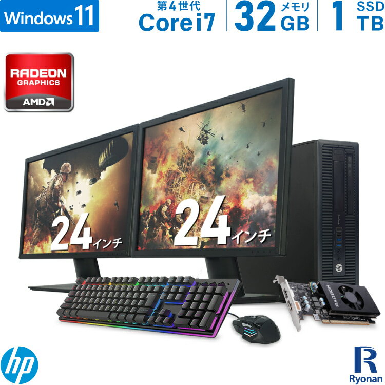 HP ProDesk 600 G1 SFF 第4世代 Core i7 メモリ:32GB 新品SSD:1TB デスクトップパソコン 24インチ 液晶 新品キーボード マウス DVD-ROM Office付 ゲーミングPC グラフィックボード搭載 RADEON RX6400 搭載 デュアルモニター
