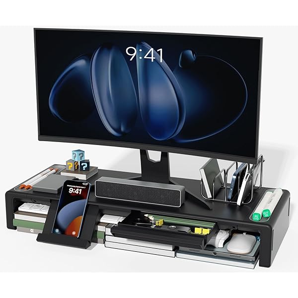 このディスプレイの立管は完璧なデスク整理器であり、同時に大きなスペースを節約しています。
