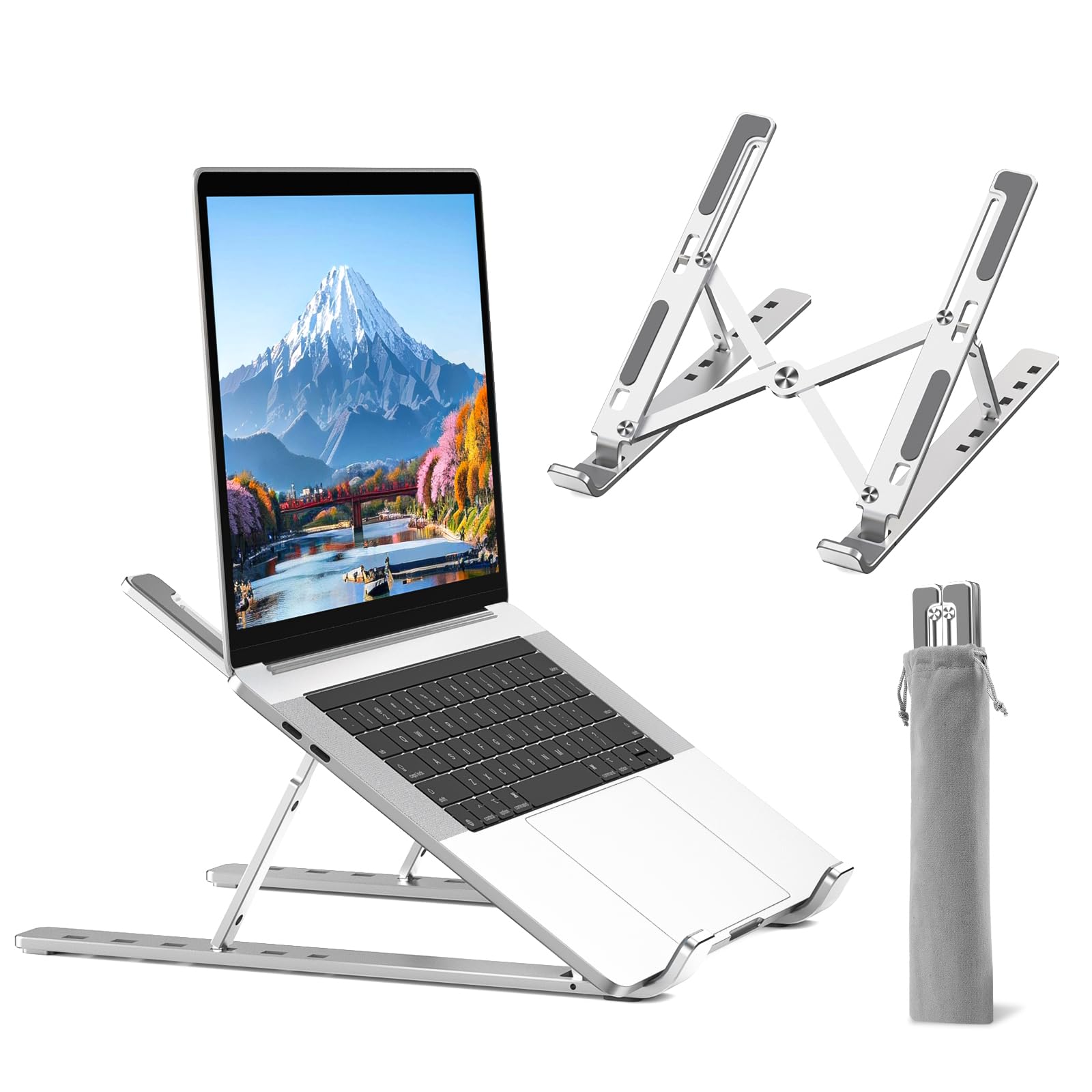 | BoYata ノートパソコン スタンド iPadスタンド 折りたたみ式 6段階調節可能 軽量 放熱 アルミ合金製 PCタブレット 15.6インチまでデバイスに対応 在宅/出勤勤務 収納袋付き シルバー