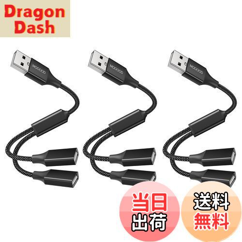 【送料無料】MOGOOD USB分岐器 Yケーブル USB1進2出アダプタ充電/データ伝送のためのダブルUSB 2.0電源ケーブル拡張ダブルUSBポート拡張ハブノートパソコン/Mac/自動車のための追加マルチポートデータ分割(ブラック,3パッケージ)