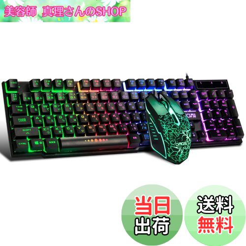 | 【送料無料】CHONCHOW ゲーミングきーボードマウスセット 日本語配列 ps4 スイッチ対応ゲーミングキーボード 108キー 七色LEDバックライト usb有線 19キー防衝突 ゲーミングキーボード テンキー ゲーミングマウス 六つのボタン 4段階DPI 301J