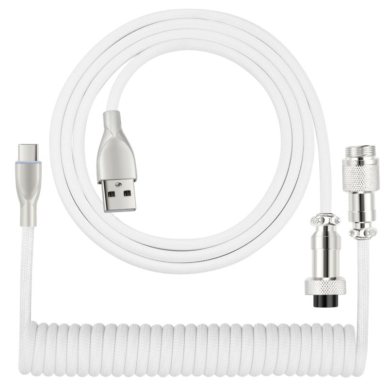 | IYUANEPRO USB Type C キーボード コイルケーブル USB C - USB A ケーブル ゲーミングキーボード用 編組 取り外し可能 メタル アビエイター コネクター ダブルスリーブ キーボードケーブル 6フィート