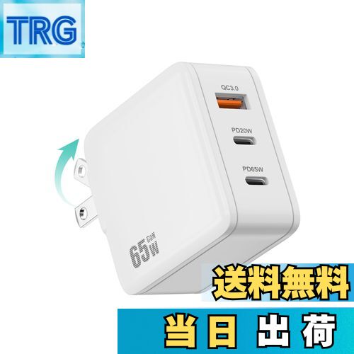 | 【送料無料】PD USB充電器 65W GaN Type C 急速充電器 高速充電器 PD対応 USB-C×2 & USB A 3ポートGaN(窒化ガリウム) 折りたたみ式プラグ PSE技術基準適合 iPhone/Android/iPad/MacBook/ノートパソコン各種対応 その他USB-C/USB-A機器対応