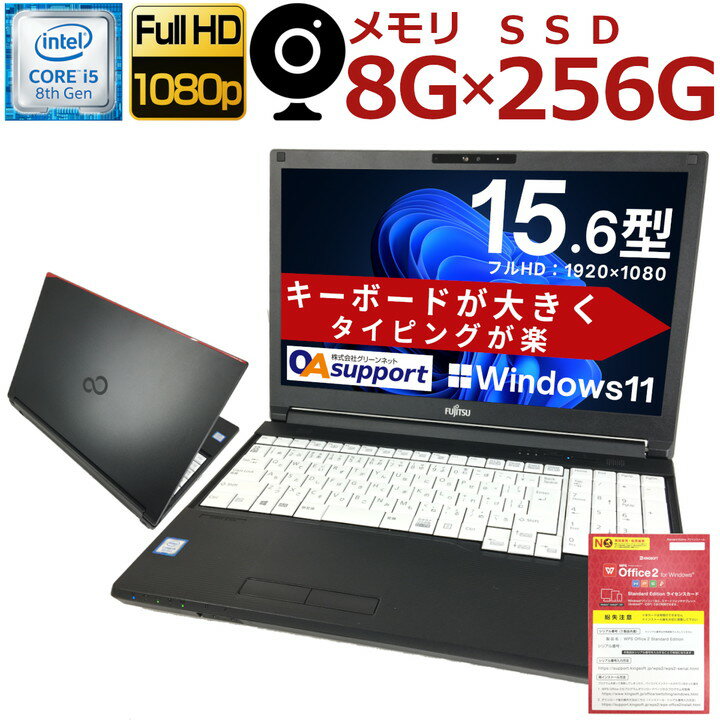 | 【フルHD液晶搭載・2019年モデル】中古パソコン 中古ノートパソコン Windows11 フルHD液晶おまかせ 第八世代 Corei5 軽量SSD 高速メモリー カメラ内蔵 WPS Office付 テンキー 最新OS 中古動作良好品【即日発送】【送料無料】