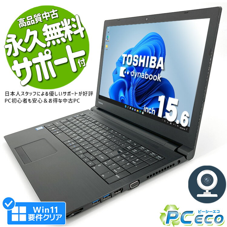| 【新生活セール8000円off】 ノートパソコン 中古 Office付き Win11正式対応 第8世代 WEBカメラ SSD 128GB テンキー HDMI Bluetooth 訳あり Windows11 Pro 東芝 dynabook B65 Corei5 8GBメモリ 15.6型 中古パソコン 中古ノートパソコン