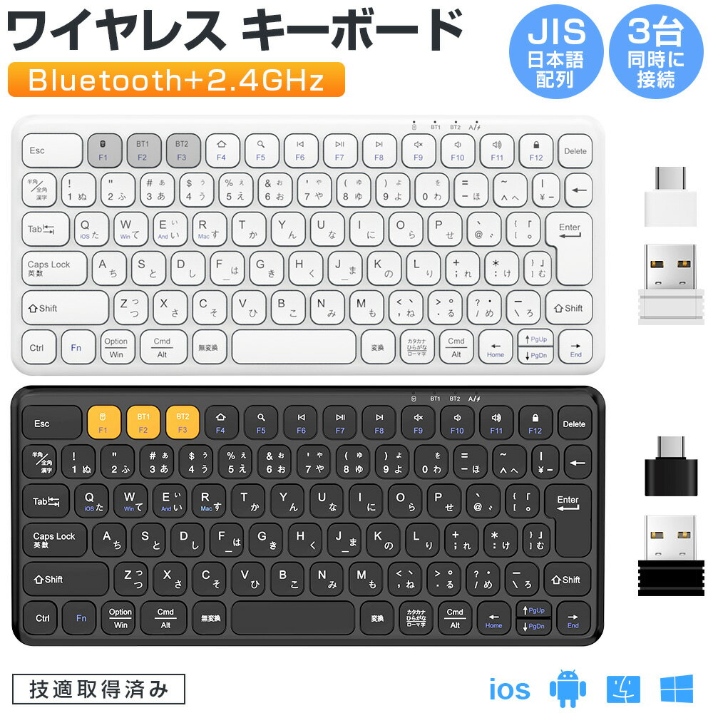 【Bluetooth&2.4GHz両対応・ワイヤレスキーボード】 パソコンやスマートフォンなど、Bluetoothを内蔵した機器とレシーバーなしで接続できます。