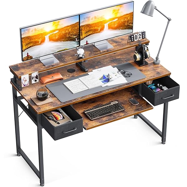 【送料無料】パソコンデスク キーボードスライダー付き 幅120cm ゲーミングデスク 机 pcデスク 引き出し2杯付き モニター台付き おしゃれ 省スペース 一人暮らし 在宅ワーク ビンテージ
