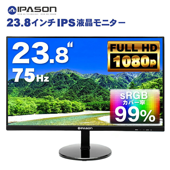 【エントリーして最大10000ポイント】IPASON アイパーソン LED液晶モニター 23.8インチワイド ブラック 1920×1080 (フルHD) 16:9 IPSパネル LEDバックライト付 非光沢 ノングレア 液晶ディスプレイ HDMI VGA【新品】