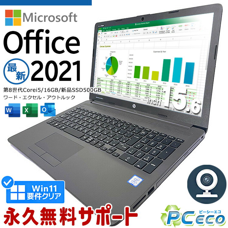 【新生活セール23000円off】 ノートパソコン Microsoft Office付き 中古 マイクロソフト Word Excel WEBカメラ 新品 SSD 500GB 第8世代 テンキー Windows11 Pro HP ProBook 250G7 Corei5 16GBメモリ 15.6型 中古パソコン 中古ノートパソコン