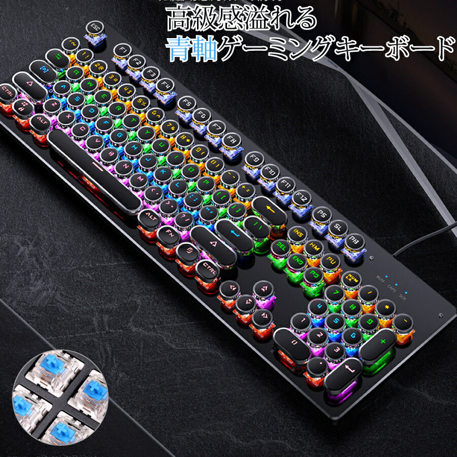 この商品は 青軸キーボード ゲーミングキーボード 英字配列 送料無料 ポイント タイプライター風青軸イルミネーションゲーミングキーボード 商品説明