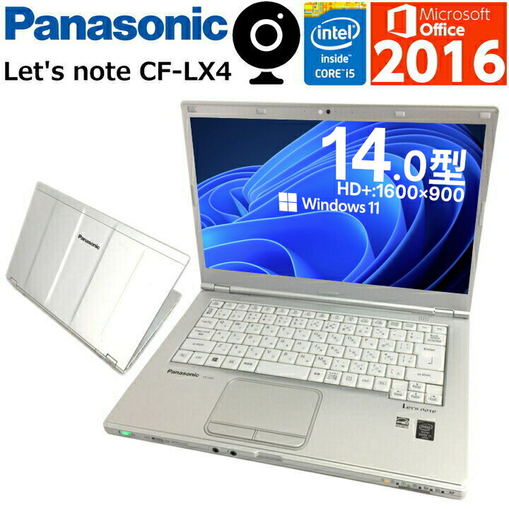 | 【Webカメラ内蔵】中古パソコン 中古ノートパソコン Windows11 Panasonic Let's note CF-LX4 軽量モバイル 第五世代 Corei5 高速SSD USB3.0 SDカード対応 無線内蔵 Microsoft Office2016付【送料無料】