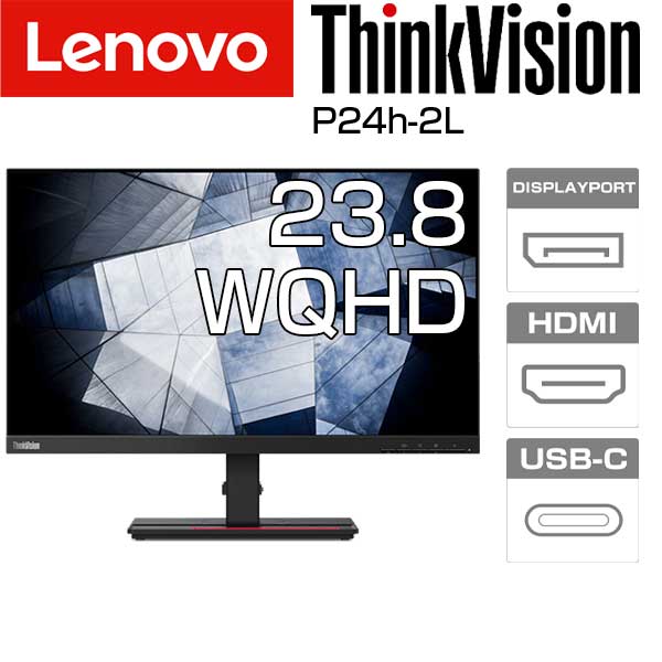 Lenovo 23.8型 ワイド モニタ ThinkVision P24h-2L 62B2GAR1JP WQHD ( 2560×1440 ) IPS パネル ノングレア LEDバックライト 応答速度 6ms 75Hz HDMI Displayport USB-C スピーカー チルト スイーベル 高さ調整 ピボット VESA規格 レノボ ディスプレイ インチ モニター
