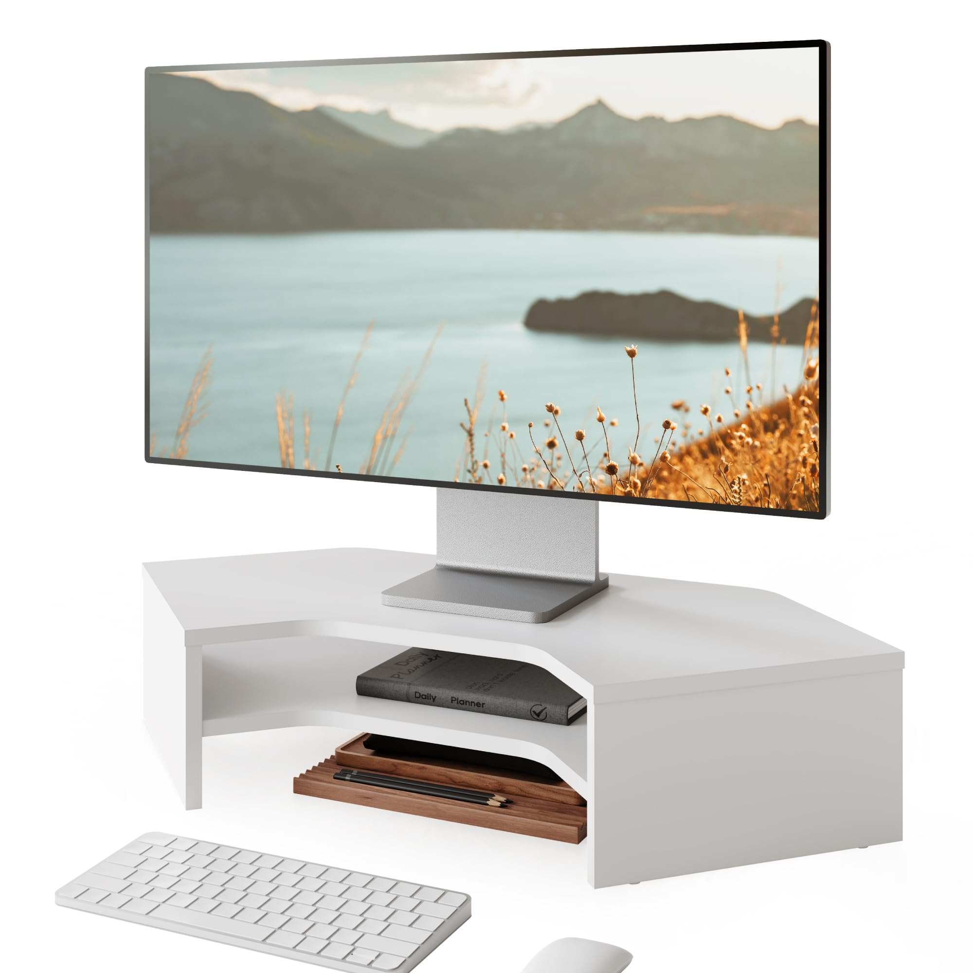 【三角コーナーモニター台・省スペース有効活用】部屋の角やデスクの隅にぴったりフィットする設計で、コーナースペースになりがちな空間を見事に有効活用できます。
