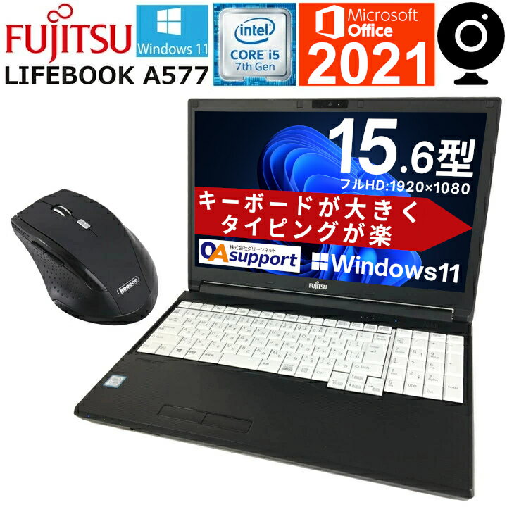 | 【パソコン全品6,000円OFFクーポン配布中!】【Windows11搭載&Webカメラ内蔵】中古パソコン 中古ノートパソコン Windows11 FUJITSU LIFEBOOK A577 第七世代 Corei5 Microsoft Office 2021付 新品SSD HDMI USB3.0 最新OS 中古品【送料無料】