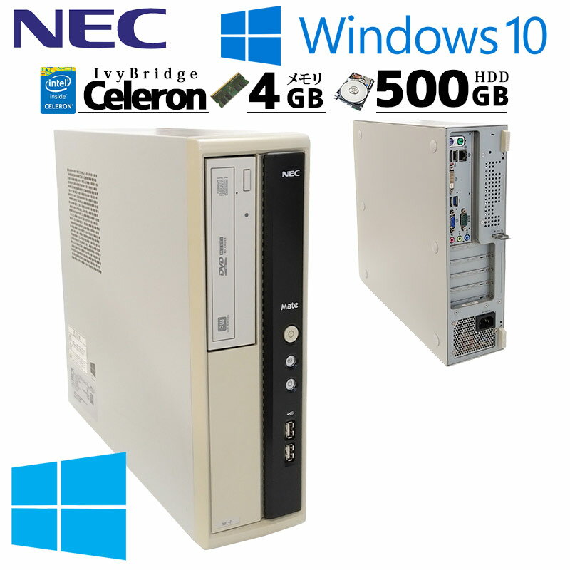 中古パソコン NEC Mate MK27E/L-H Windows10 Celeron G1620 メモリ 4GB HDD 500GB DVD-ROM WPS Office (2717) 3ヵ月保証/ 初期設定済み デスクトップパソコン 本体のみ 中古PC