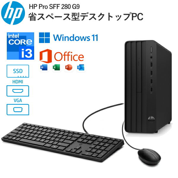 【MS Office搭載】 HP デスクトップ HP Pro SFF 280 G9 8L2R6PA-AADX デスクトップパソコン Windows11 Pro Core i3 メモリ 8GB SSD 256GB DVDライター VGA HDMI USBキーボード USB光学マウス デスクトップPC 新品 本体 省スペース 8L2R6PAAADX